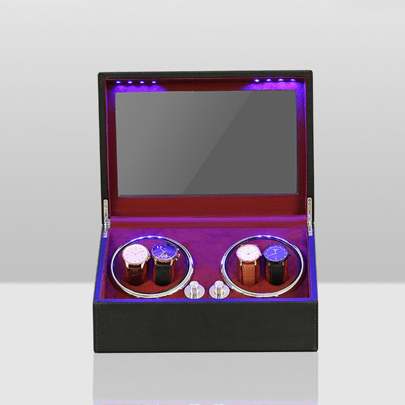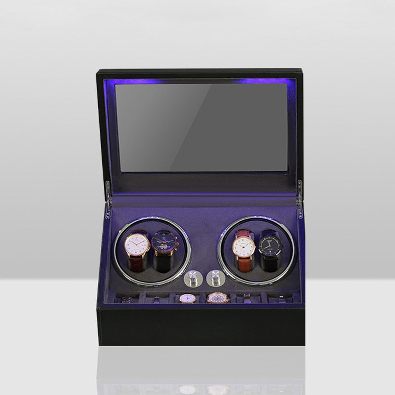 Keep your watches ticking and looking good with ChronoSpin's 4+6 Watch Winding Storage Box.Its silent dual motors ensure your watches stay wound and ready to go, while LED lights make sure they look great! Enjoy a sleek design and plenty of storage space for all your favorite timepieces, all in one stunning box.